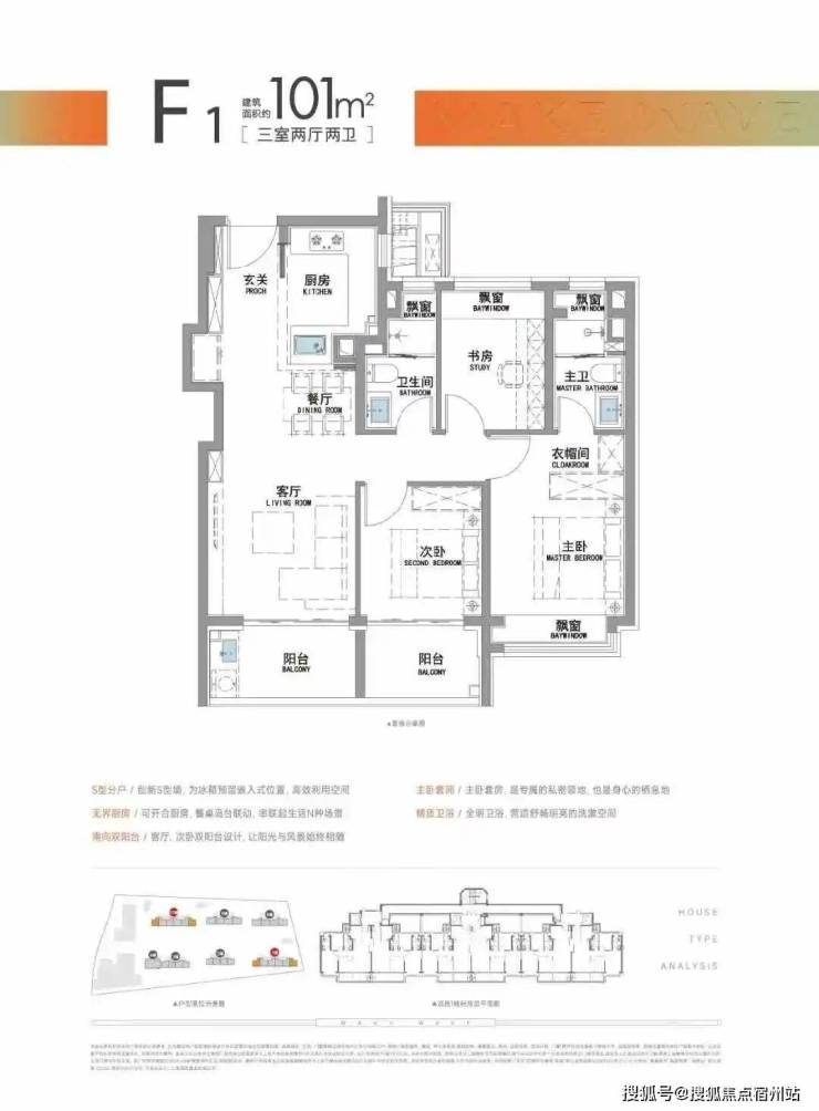 “南向双阳台+南北双飘窗”,构筑真3房户型!