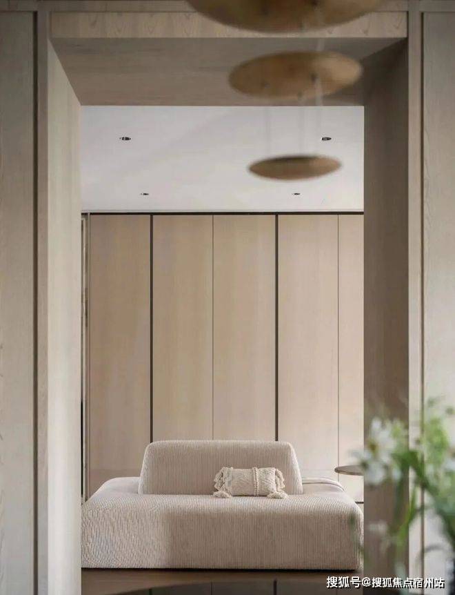 三楼整层为主卧套房,样板间设计了双开门入卧室,进入起居空间,样板间选择在这里放一些艺术装饰、设计吧台来彰显主人品味。