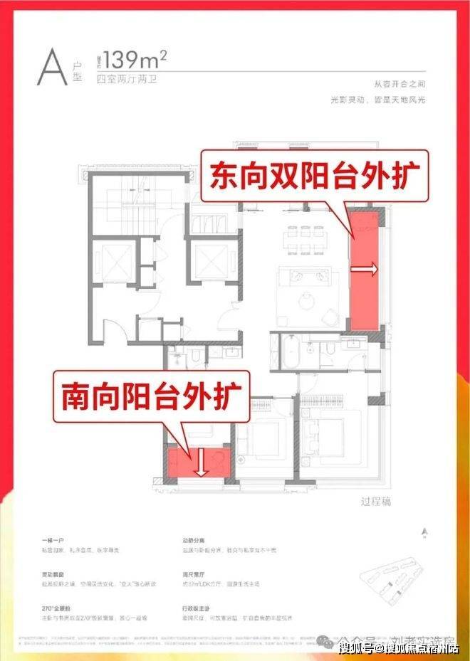 建面约139㎡4房是三阳台设计,✅✅保利誉滨江售楼处电话:400 - 8824 - 258✅✅超大观景阳台搭配约5.7米大横厅,两者打通后形成的大方厅,尺度堪比150㎡户型的客餐厅,家庭聚会、孩子玩耍都有足够空间;南次卧也能借助阳台拓展,实得率拉满。