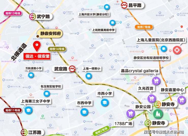 交通配套方面:项目还有着高效的出行系统,增强了通达性。 13、14号线都步行可达,武宁路站和武定路站都步行约500米左右。1公里范围内,地铁线路就更丰富了,2号线、7号线的昌平路、隆德路、江苏路、静安寺等市中心地铁站都可步行到达。
