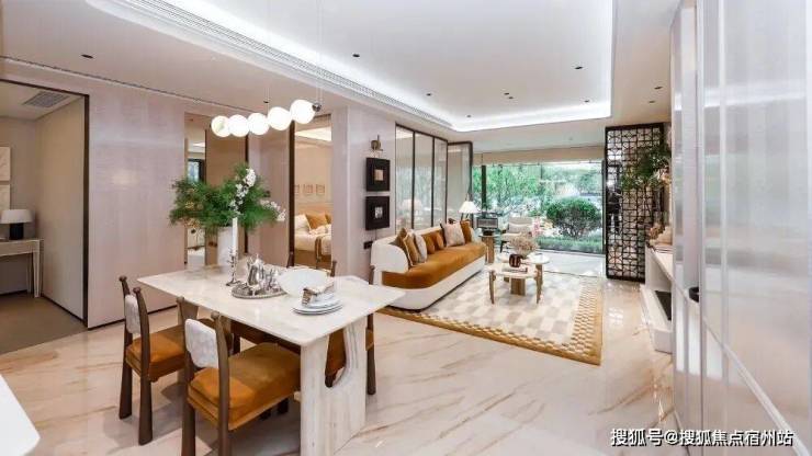 前沿中横厅设计实现 0 走廊、0 浪费,餐厅 + 过道约5 米面宽,哪怕放6人桌仍留足过道空间,面积直接对标市面 130㎡以上户型。