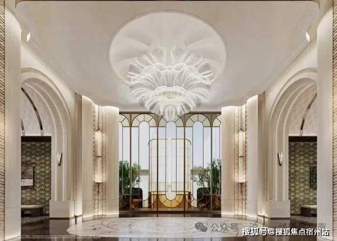 5、约600万级中更惊艳的“归家第一眼”,焕新归家仪式感。项目以长达280米的贝克米白石材门庭为序,过渡至70米私享厅堂,打造上海首个“中央车站”风格的星级酒店式门厅。