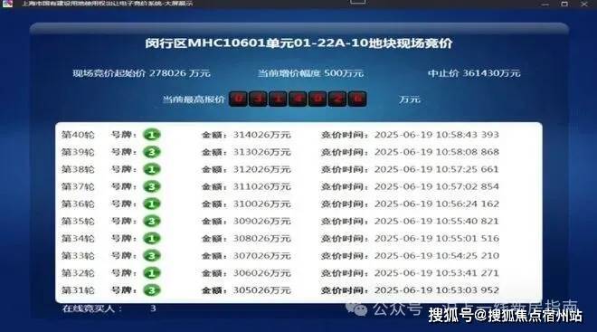 土拍回顾及规划6月19日,2025年上海第五批次土拍,经过40轮竞拍,上海保利发展竞得颛桥镇MHC10601单元01-22A-10地块(即保利都汇和煦),规划用地性质为住宅用地,出让面积4.05公顷,容积率为2。总成交价314026万元,溢价率12.95%。