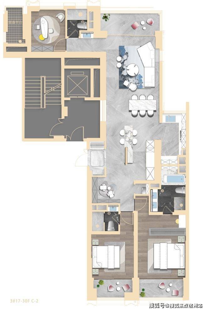 尤其主卧星级套房,配置独立衣帽间、书房,奢华主卫四分离,双台盆+淋浴区+大浴缸+智能马桶,私密性&奢适度无敌;