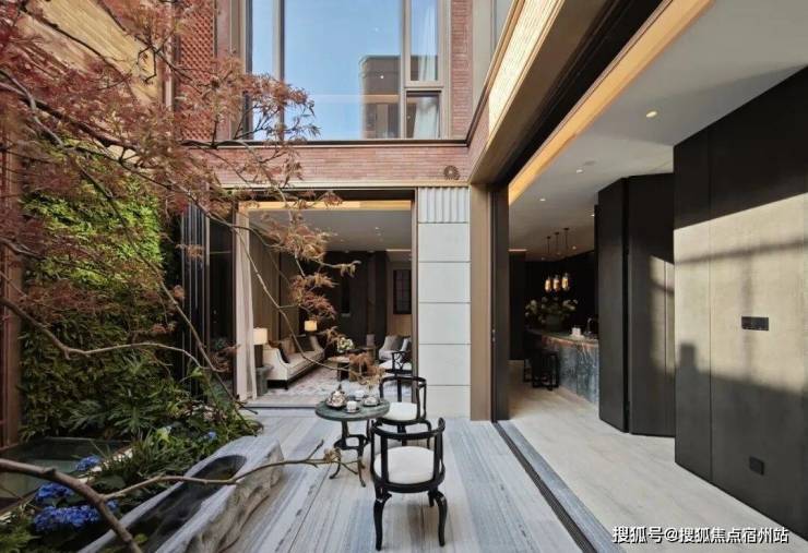 在稀贵的场地内,项目在空间规划时选择主动拔掉一栋楼来造园,作为整个项目透气的“眼”;在此基础上,又往下深挖三层,创造出空间丰富的垂直山水庭院,围绕这个庭院又布置了层层递进的配套会所体系,打造出繁华闹市中的桃花源。