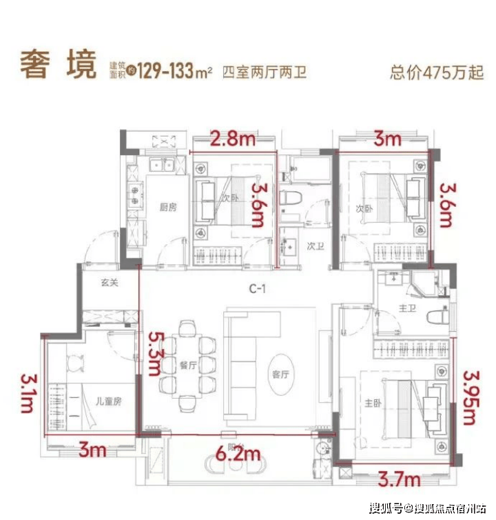 也正在此理念下,佳运名邸得房率达到了81-83%,比其他项目高出8%左右,项目100㎡户型实际使用面积堪比其他项目108㎡户型,性价比更为突出。