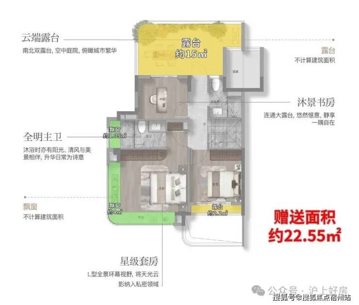 并且,整个户型的私密性、尺度感都极强,概括了以下几点: