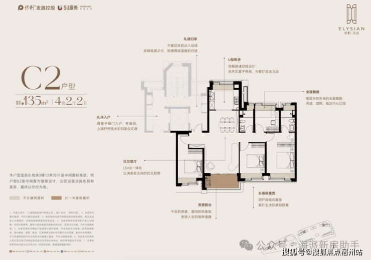 建面约135m²户型, 在1100万级四房中,不仅拥有LDKB超宽客餐厅还拥有极致改善尺度!
