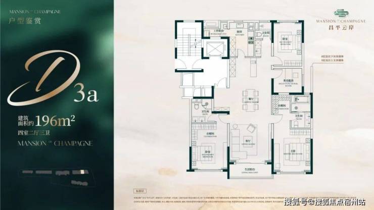 建面约196㎡4房2厅3卫户型▼
