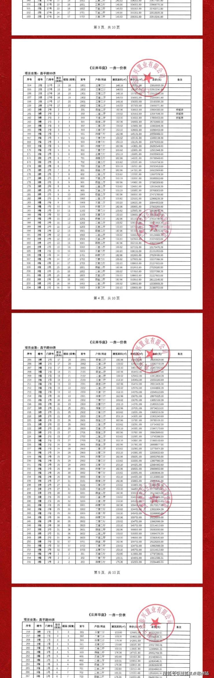 项目一房一价表▼