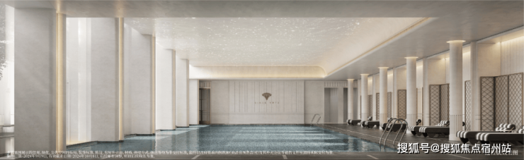 奢朗尺度,打造满水式流体游泳体验,泳池以奢材定制,高品质美学致敬城市。
