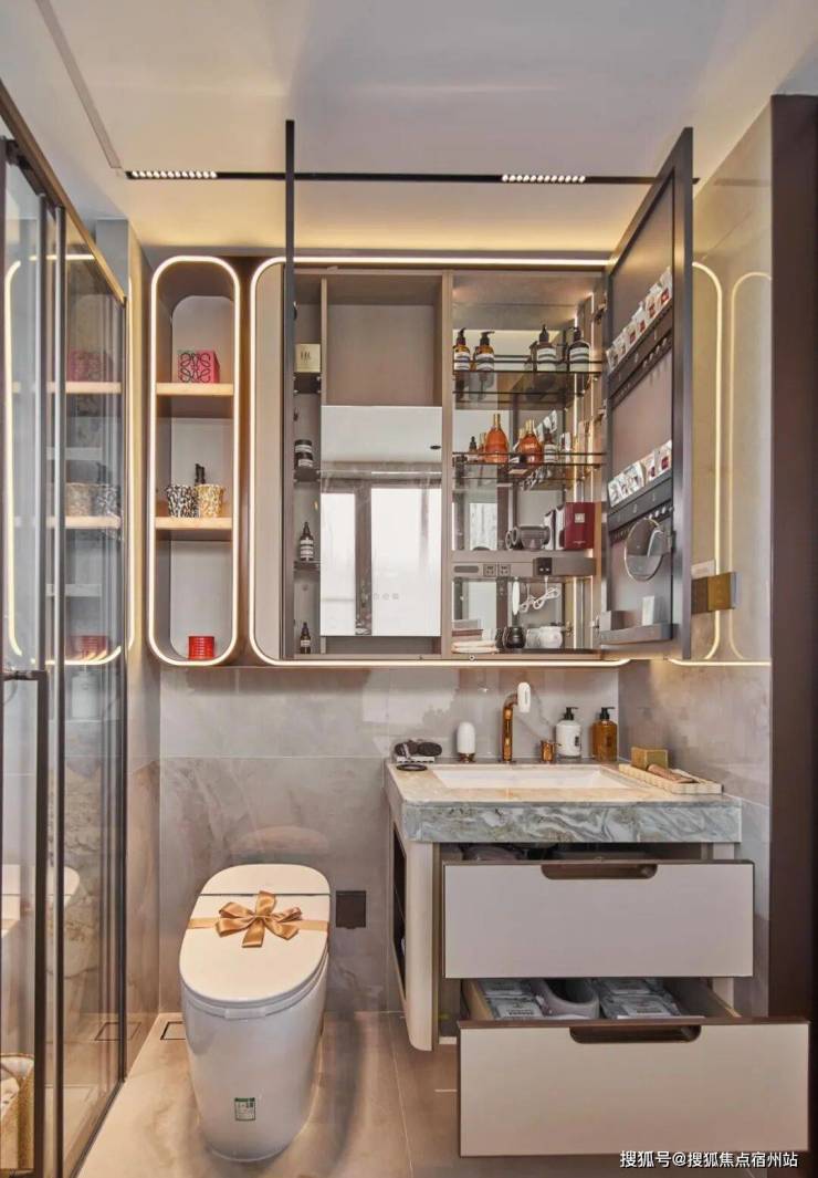 【保利天奕】特别关注到女性的生活需求,专门在卫生间配备了美妆龙头、美妆镜柜、美妆冰箱,采用“顶+面双补光照明”,能把“女本位”需求做到如此细致,目前没有几个项目能做到!