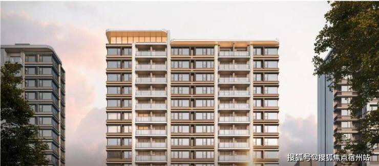蓝灰色玻璃+仿石铝板+艺术涂料材质,穿插优雅线条,让建筑这张“脸”看起来更高级。One&Only酒店式门头。用雕塑体块、温润弧面和雅致线条,营造具有艺术格调的归家仪式感。