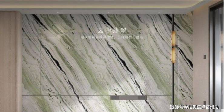 充分考虑业主的个性化需求,在电视背景板提供了新潘多拉、云中翡翠、弗朗明戈金三种结晶釉面岩板选择,成本更高,施工难度也更大。