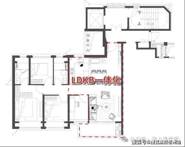 LDKB一体化 的设计,将客餐厅、厨房融为一体,打破空间便捷的同时,尽可能地提升公区的空间使用率,尺度感超强,可轻松承载会客、家庭聚会、生日派对等场景。