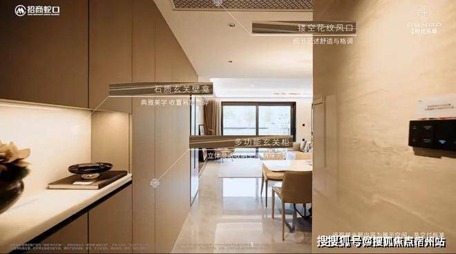 独立入户玄关空间,甄选天然石材,采用艺术拼花;招商时代乐章售楼处电话:400-8824-258 【官网】 RESERVATION✅✅石质岩板壁龛与木质柜体融合,实现归家情绪的转换。即使是不易觉察的出风口,也采用海派雕花工艺装饰,彰显品质与品位。