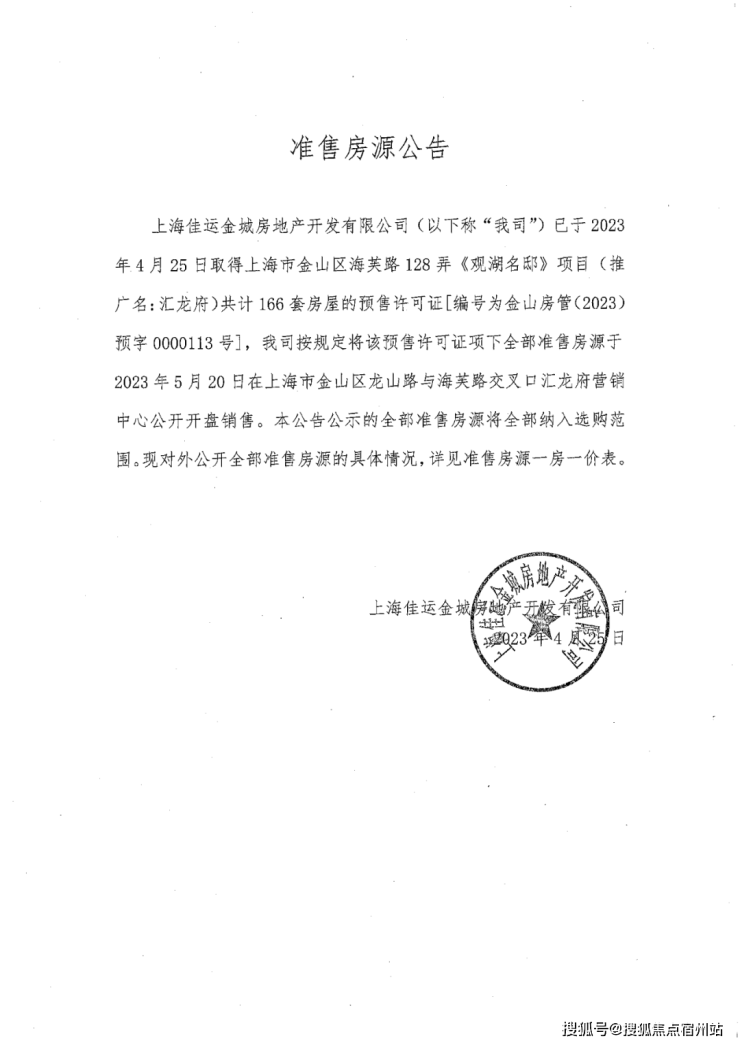 该项目(第一批次)于2023年4月25日取得预售许可证金山房管(2023)预字0000113号,目前在认购阶段。