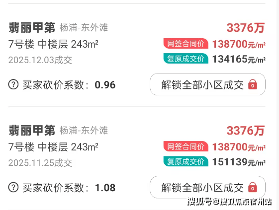 二,纵向二手看, 隔壁翡丽甲第最新13.87万/㎡,房龄8年,并且还是旧规产品,“安全垫”可谓厚实;