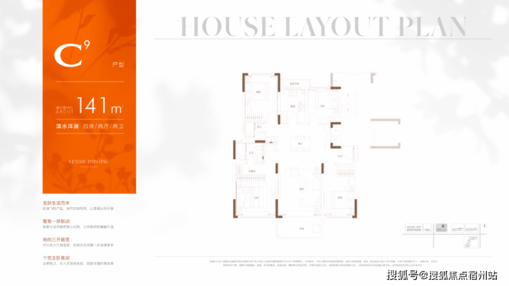 C4户型,建面约141㎡,仅做示意,具体以实际交付为准