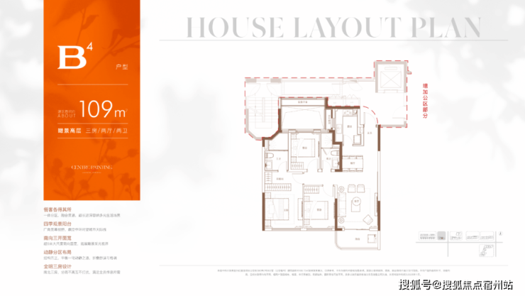 B4户型,建面约109㎡,仅做示意,具体以实际交付为准
