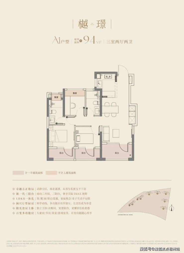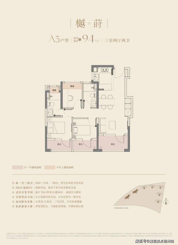 建面约94m3房2厅2卫