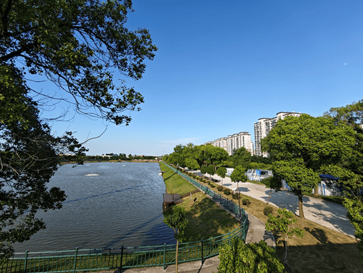 晨曦初绽时,推窗见绿树成荫翡翠华盖,桃浦河蜿蜒如青罗带,晨雾中飞鸟点水而过,惊起一圈圈泛着宋瓷青釉的涟漪。