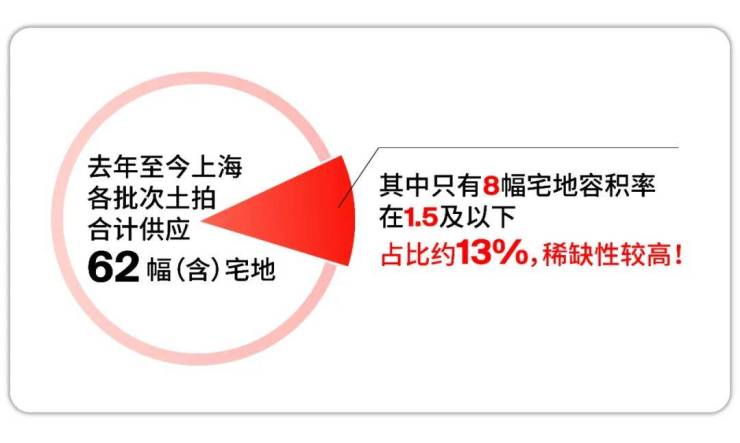 据数据统计,去年至今上海各个批次合计供应(含)宅地62幅,容积率1.5及以下的只有8幅占比 约13%,意味着全市16各区,数年也未必能轮到1块低密宅地,稀缺性不言而喻!