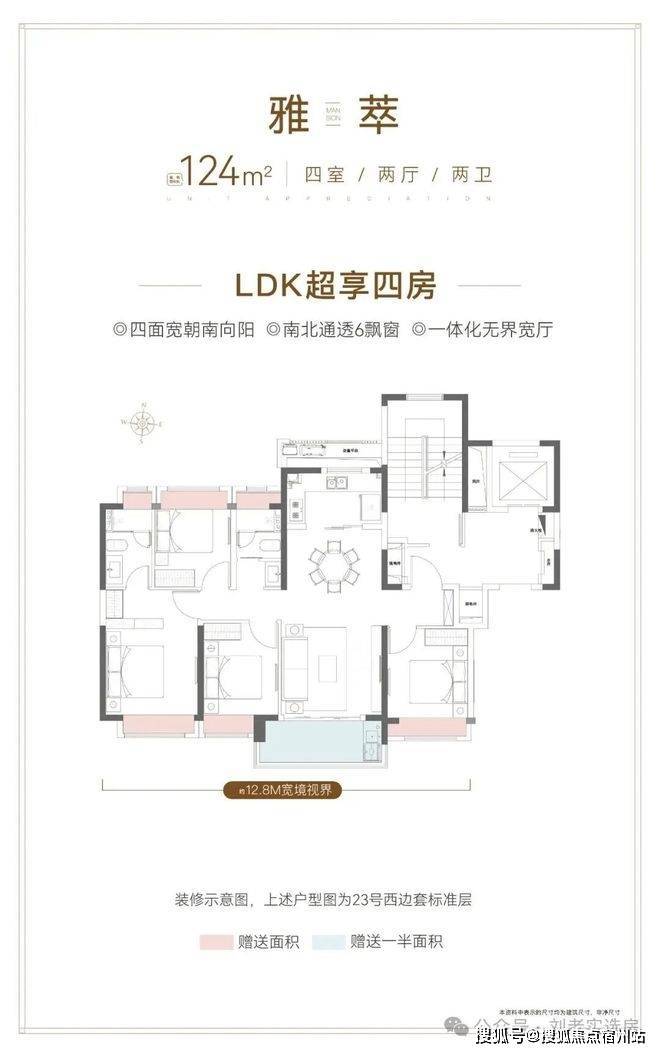 建面约124㎡的4房2卫户型,通常来说是紧凑型的户型。