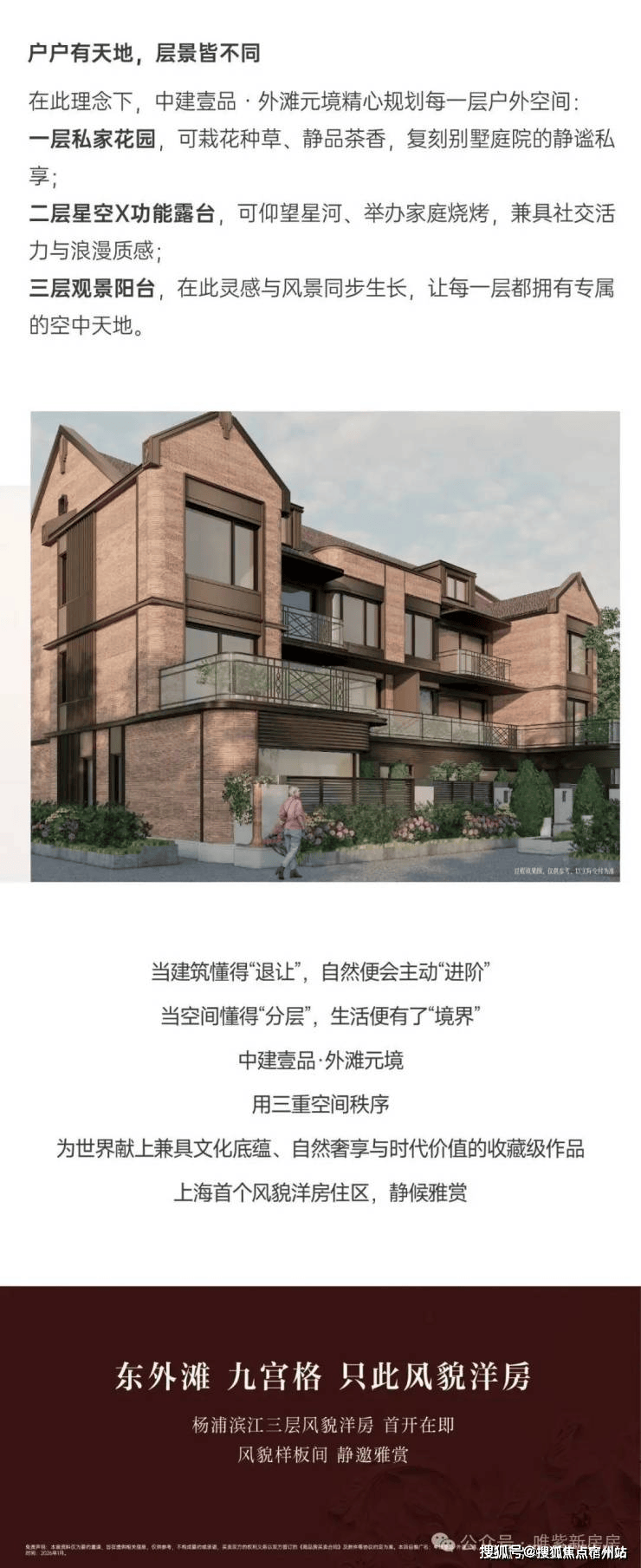 中建匠心,筑就洋房典范;江风为伴,演绎人居诗意。中建壹品外滩元境,集一线江景、低密洋房、智慧社区、全维配套、铂金服务于一体,不仅是一处居住空间,更是一种生活方式的象征,一种对高品质生活的追求与向往。在这里,你可以俯瞰江景壮阔,感受江风拂面的惬意;可以漫步洋房庭院,享受历史与现代的碰撞;可以与家人相伴,共度温馨时光;可以与圈层好友相聚,共话美好未来。选择中建壹品外滩元境,便是选择了一种兼顾繁华与静谧、品质与舒适、历史与现代的理想生活,让每一个日常都充满诗意与惊喜,让江畔洋房,成为家族荣耀的传世之作。