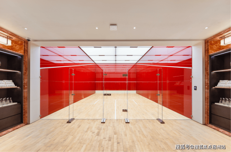 壁球馆 用鲜亮的米兰红石材作为背景,营造非常时尚的运动风。