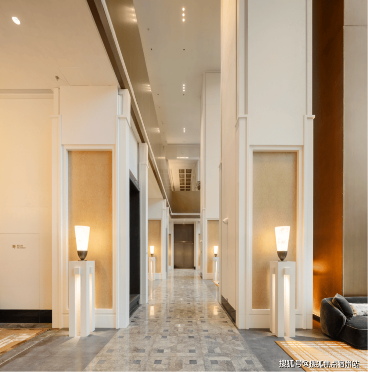 再往里走就是迎宾区,整个公区部分由世界顶级的奢华酒店设计专家CCD负责设计,4.5米的层高直接打造出了顶奢酒店的质感。