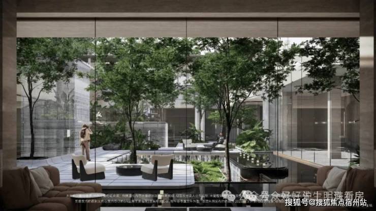 社区景观方面,项目运用室内手法室外化设计构想,将垂直景墙、悬浮观景台与叠水景观立体穿插,形成情随境转的沉浸式体验,自然元素渗透进室内,并与室内空间动态互动。