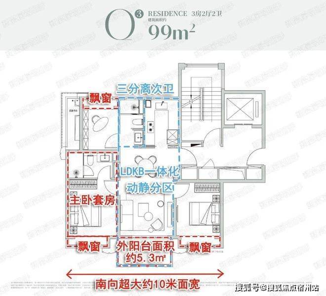 全屋飘窗设计,南向双套房卧室均配备独立衣帽收纳+卫生间设计,✅✅前滩滨江道售楼处电话:400 - 8824 - 258✅✅居住舒适度、景观视野与隐私性相当优秀!