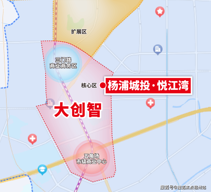 项目处于中部大创智核心区内,根据杨浦区规划,大创智和杨浦滨江、环同济、大创谷一样,是杨浦重点发展的四大区域之一。