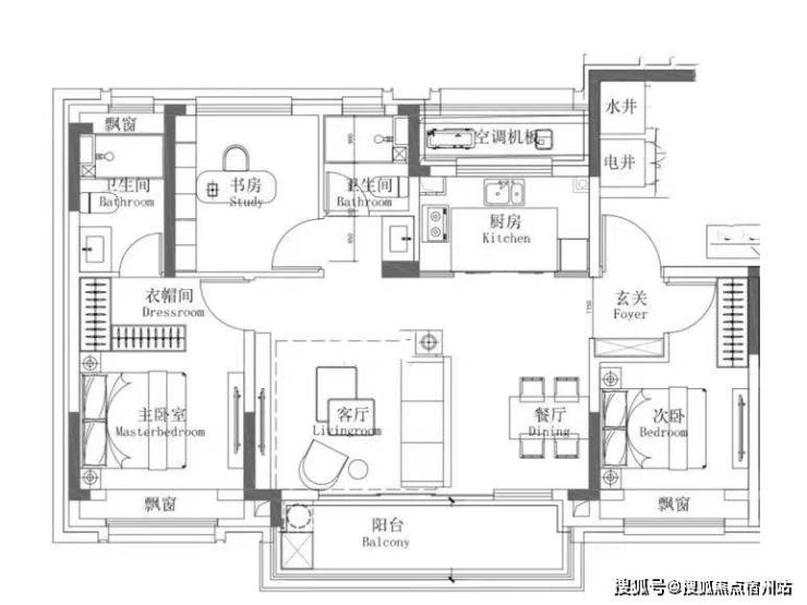 该户型做到了 四开间朝南+南北通透+主卧套房设计+全卧室带飘窗,一步到位的大4房。