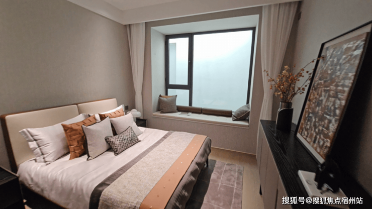 主卧套房设计,匹配独立卫浴、步入式衣帽和飘窗,空间非常阔绰。
