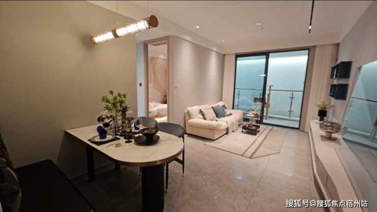 客餐厅相连,客厅+次卧南接超大阳台,室内空间尺度感十足,整个采光面拉到极致。