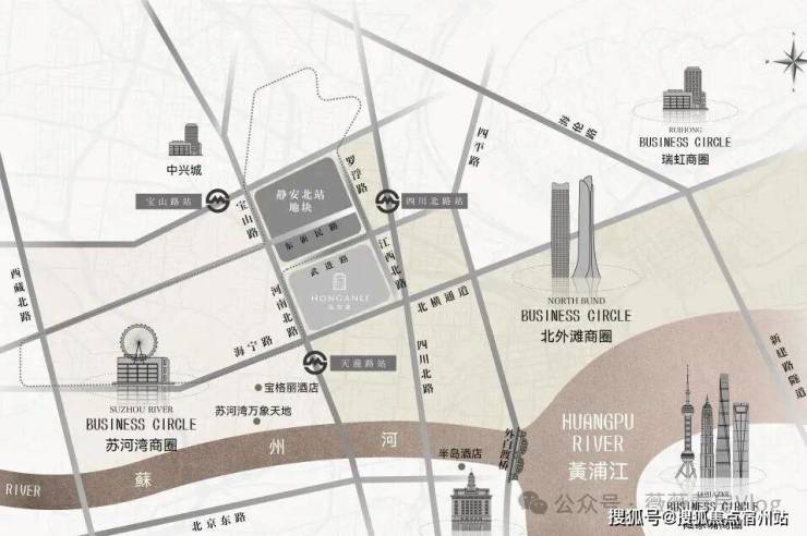 静安里踞守 静安内环内天目社区C070102单元04-05、05-01地块 , 属北站新城核心版图,承老北站百年历史底蕴,拥外滩、北外滩、苏河湾三大顶级商圈环伺 ,直线距苏州河约1公里、外滩约1.4公里、北外滩约1.7公里,左手是海派历史的醇厚底蕴,右手是国际都会的璀璨繁华,天赋地段难以复刻