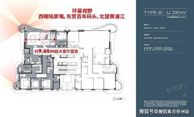 项目即将迎来五批次加推,约180㎡/240㎡/290㎡/388㎡全线产品登场,这其中约290㎡是首开爆款户型,时隔1年后再度返场,江景首排占位,享无遮挡环幕视野。