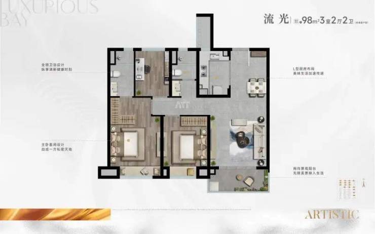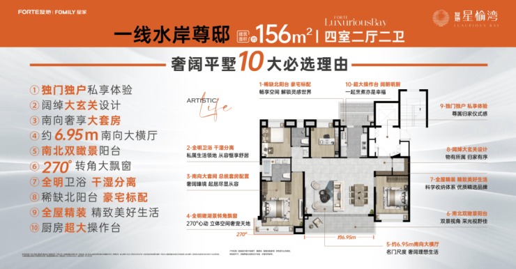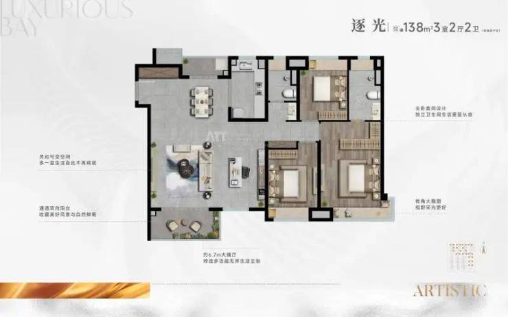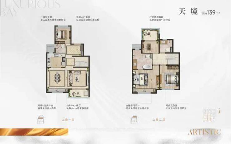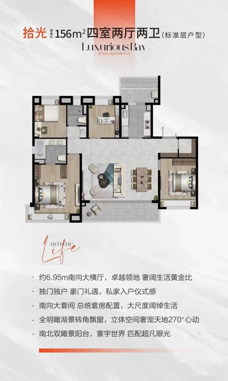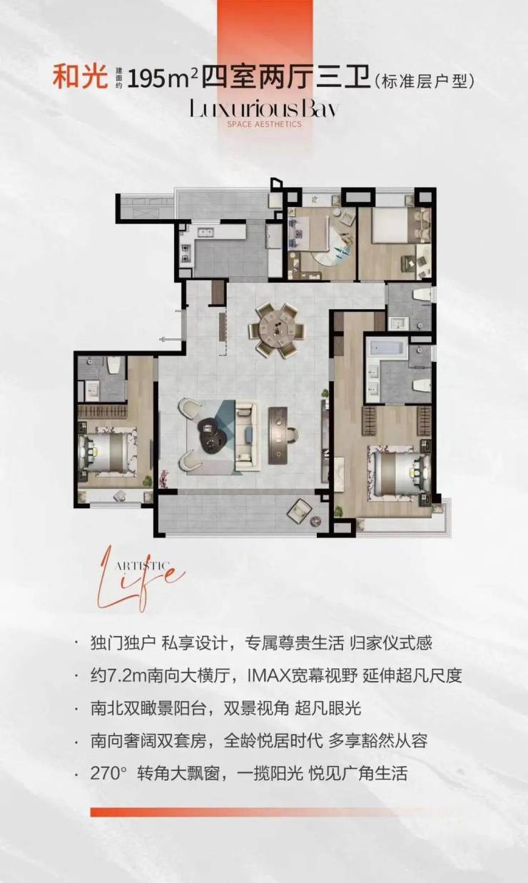 以7.6m大横厅,深U型厨房以及奢阔休闲阳台,彰显高阶气度与格局,独立入户的设计互不打扰,静享私密,南向大横厅,让阳光、风景与生活常伴。 再次以奢阔美学艺术生活,敬献金山大人物。