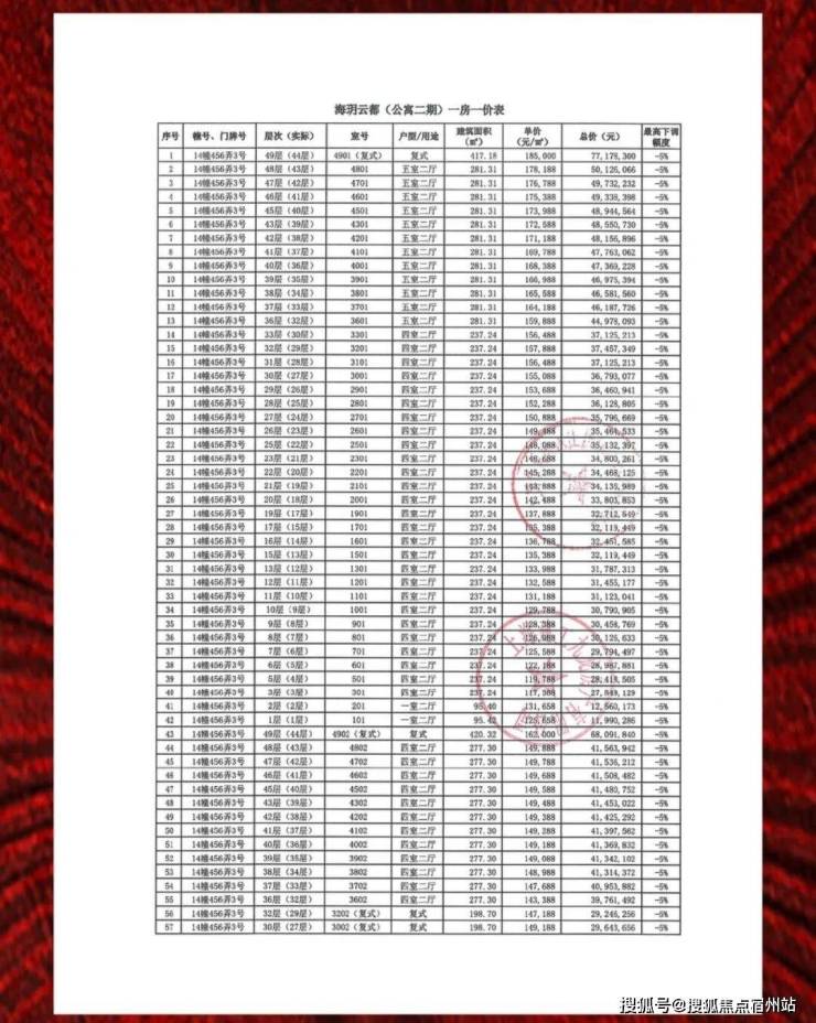 一房一价表如下: