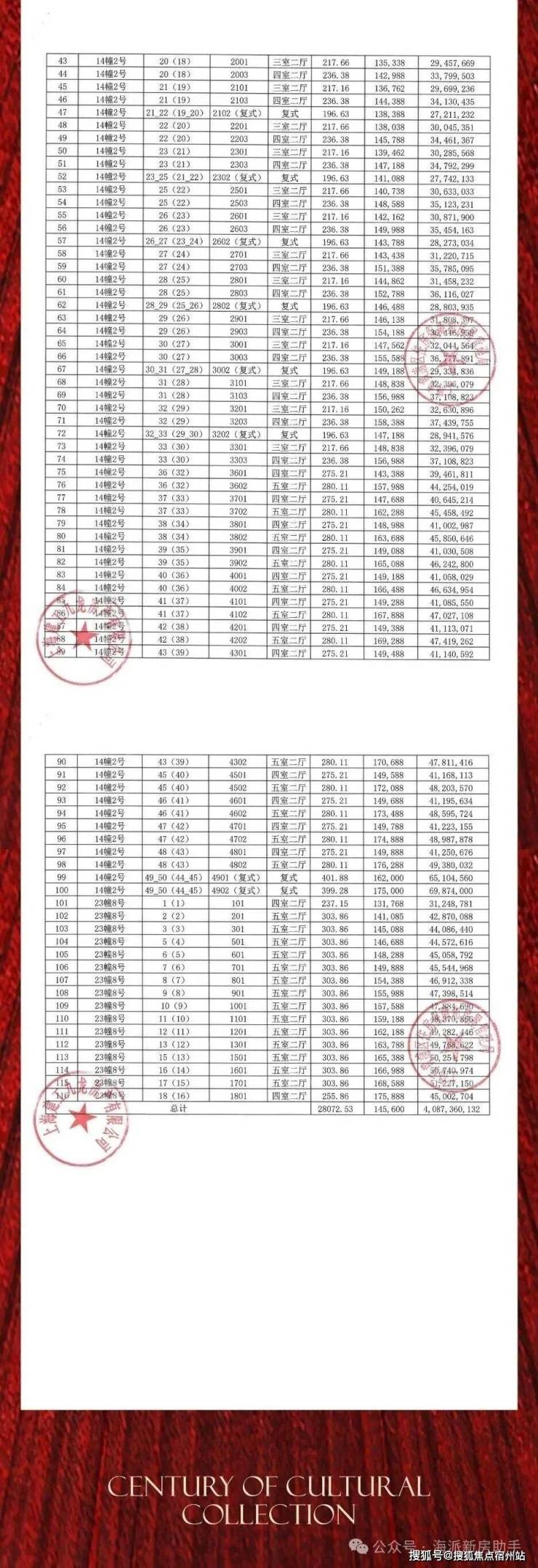 建面约280㎡户型,总价约4400-4950万