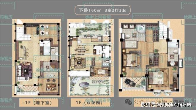 二层直接入户一层为一个独立餐厅+中西厨房+景观露台;三层为大面宽客厅+南北两间独立套房;四层为套房设计,包含书房、衣帽间、卫浴、观景露台等全配套;总体户型4房2厅的全套房设计,还附享6个露台。可满足三代同住需求。