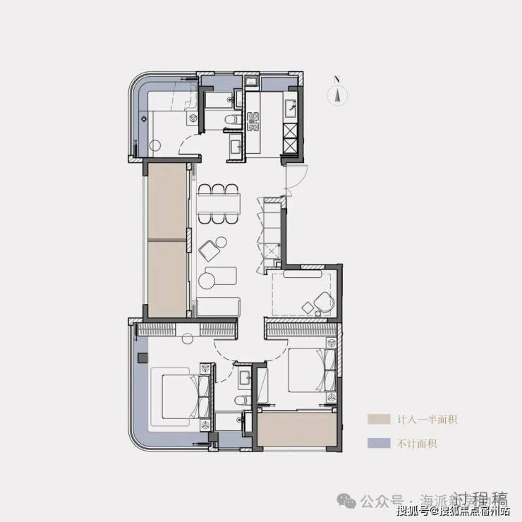 阳台+飘窗算下来,约108㎡户型的实得率达到了惊人的约87%,实得面积约94㎡!
