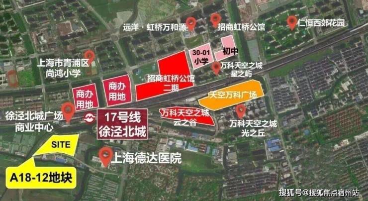 项目北侧紧邻17号线徐泾北城站(暂时需绕行河道),1站可达徐盈路天空万科广场,2站至蟠龙古镇商业区,3站直达国家会展中心,4站即达虹桥枢纽。