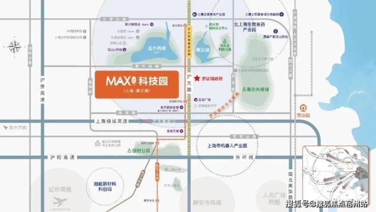 MAX科技园落地于上海市宝山区罗店镇美兰湖路南侧,建设内容包含企业总部办公区、中试研发区、科技研发孵化区、服务配套区等,计划引进⽣物医药研发、智慧健康、检验检测、智能制造等产业。
