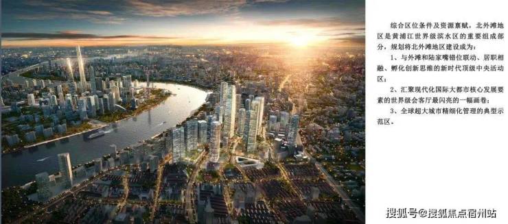 2020年5月13日上海市规划资源局《虹口区北外滩街道控制性详细规划修编》提出,北外滩将按照“最高标准、最好水平”的总体要求,打造“世界级会客厅”和“具有全球影响力的世界级滨水区”为目标,与外滩、陆家嘴共同打造“黄金三角”核心商务区的战略高地。
