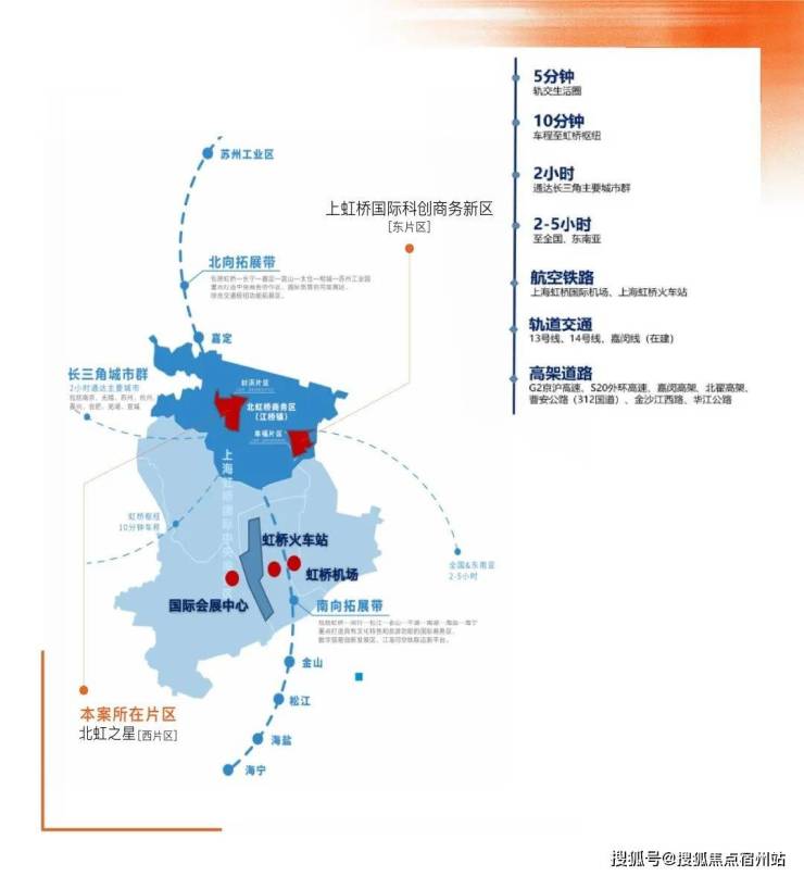 北虹桥作为虹桥国际开放枢纽的创新承载区,兼具“长三角,大虹桥”的双重区位优势,将承载虹桥国际中央商务区主导功能,成为链接辐射长三角的创新经济集聚区、中央商务配套区和高品质国际化社区。