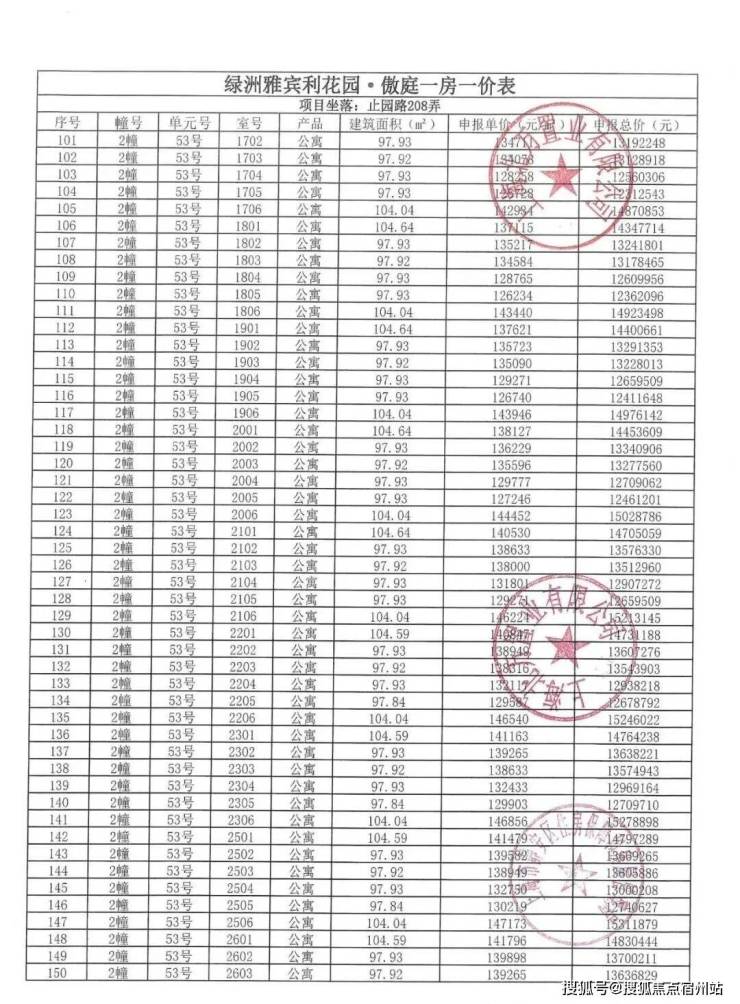 一房一价表发布