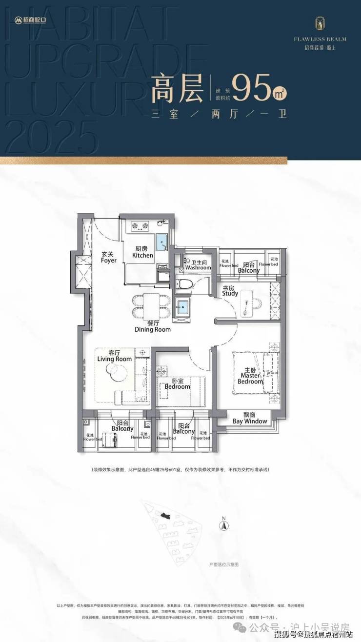 三万平方看到本次公布的户型着实被惊到了, 招商臻境源上的建面约95平的已经不满足三个阳台的豪华配置了 , 首创在阳台两侧加了花池 ,颇有第四代住宅的意思。